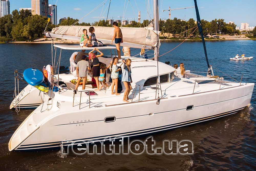 Sailing and motor cruising catamaran of the prestige class "Lagoon-380", manufactured by the French shipyard Lagoon. Fast, light, maneuverable and safe catamaran is designed to give the pleasure of a comfortable rest on the water.