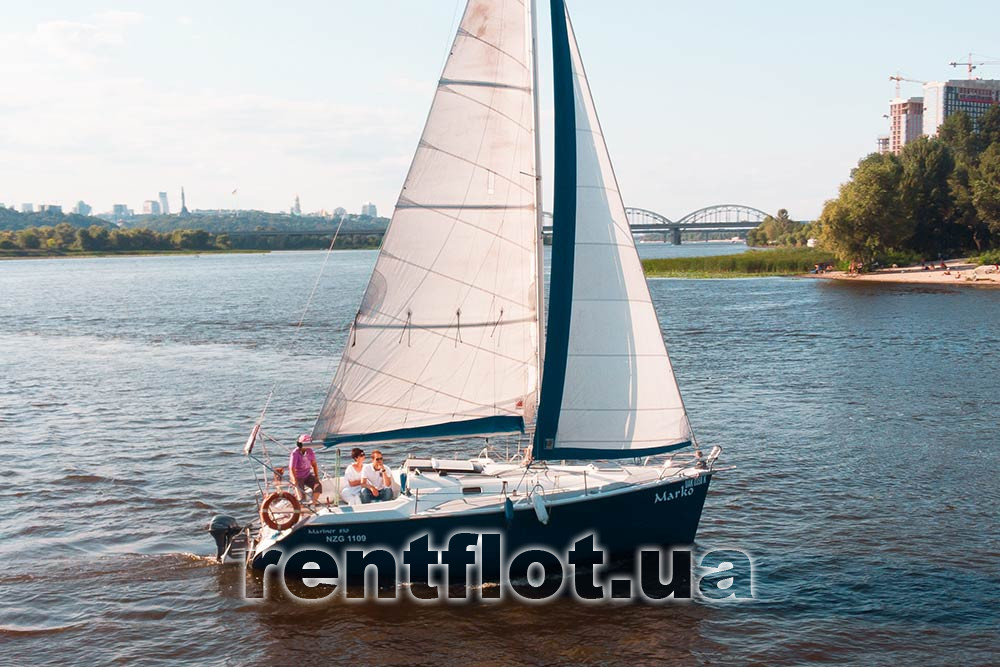 Sailing and motor cruising sports yacht Mariner 830, navigation area - inland water system of Ukraine and the Black Sea. The mast lowers within 3 minutes and the yacht can pass under almost any bridges.