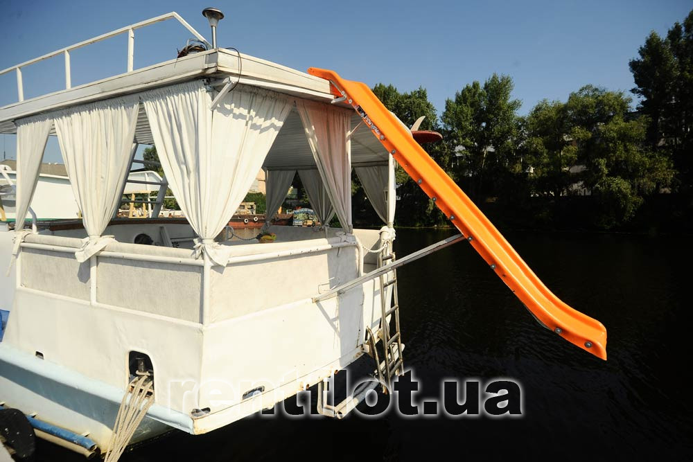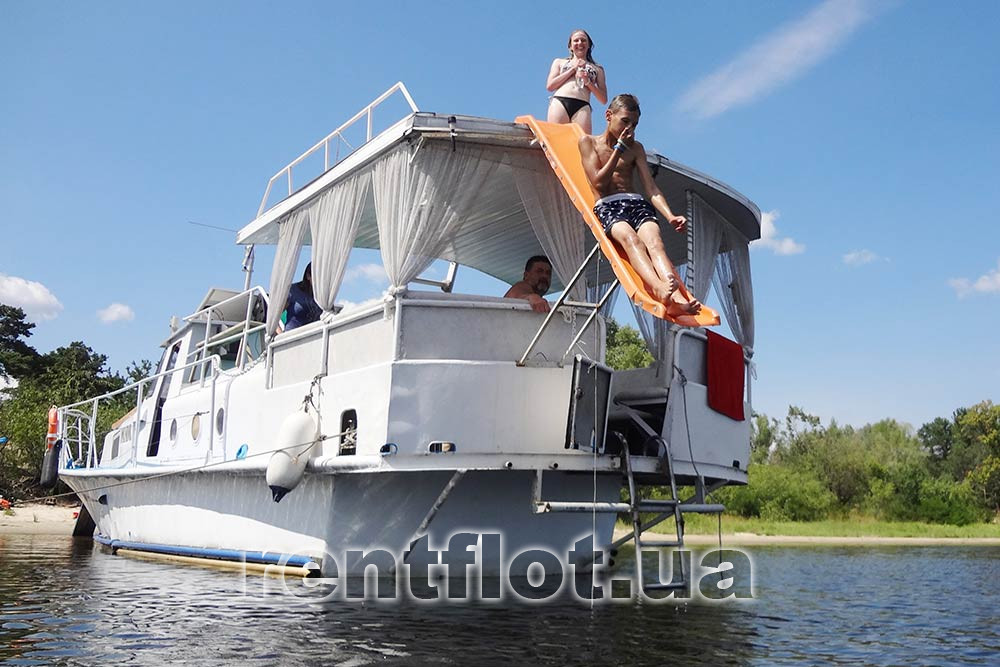 Отдых на острове будет разнообразным и запоминающимся: можно съехать по водяной горке прямо в Днепр, или прокатиться на надувной лодке, или порыбачить с удочкой. А можно сыграть в волейбол, бадминтон или нарды - на теплоходе есть развлечения на любой вкус. Для детей есть подборка мультфильмов в кают-компании, или можно потанцевать под дождём мыльных пузырей (генератор мыльных пузырей есть на борту), пока взрослые готовят шашлык на мангале. А в вечернее время можно устроить дискотеку со светомузыкой для всей компании.