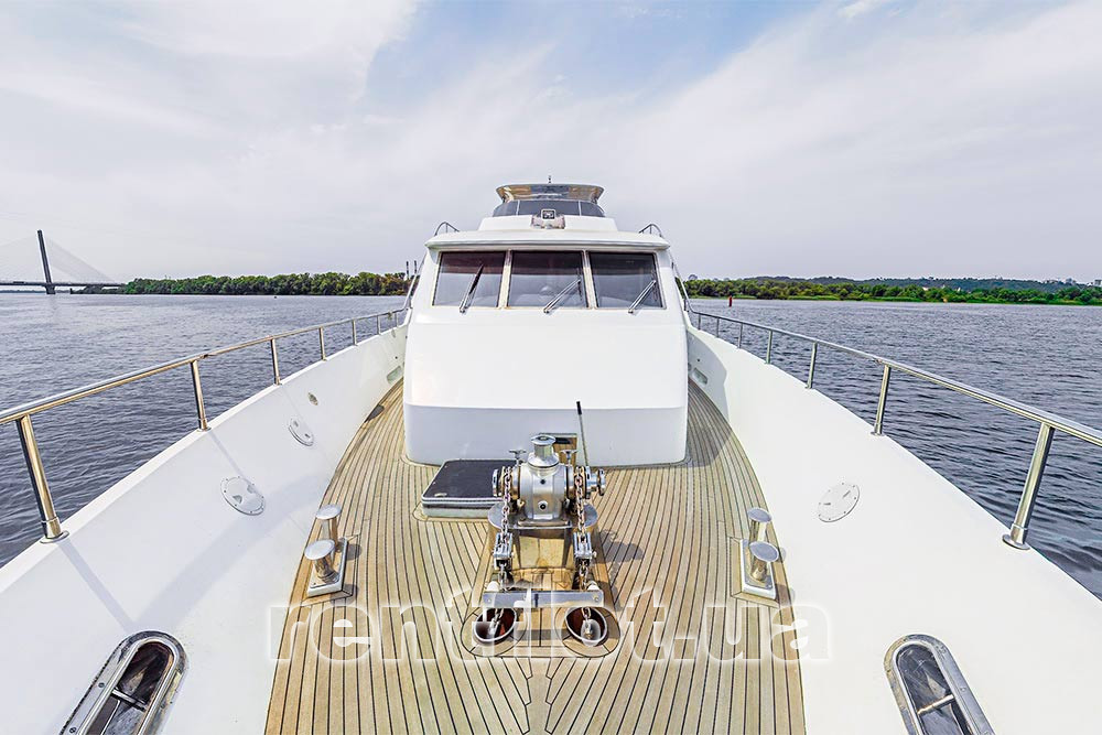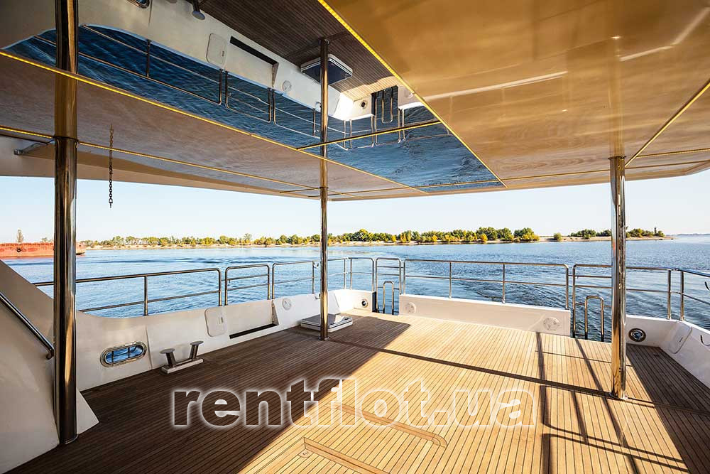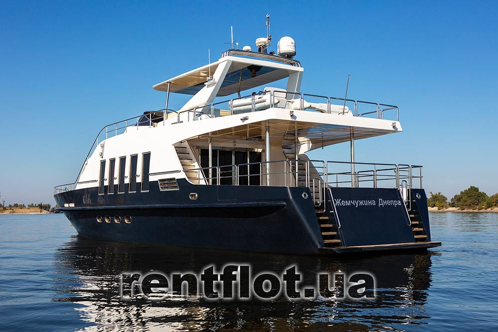 Стальная флайбриджная яхта «Жемчужина Днепра» V.I.P. - класса, рассчитана на 20 человек. Яхта прекрасно подойдёт для небольших речных путешествий и длительного отдыха на воде.