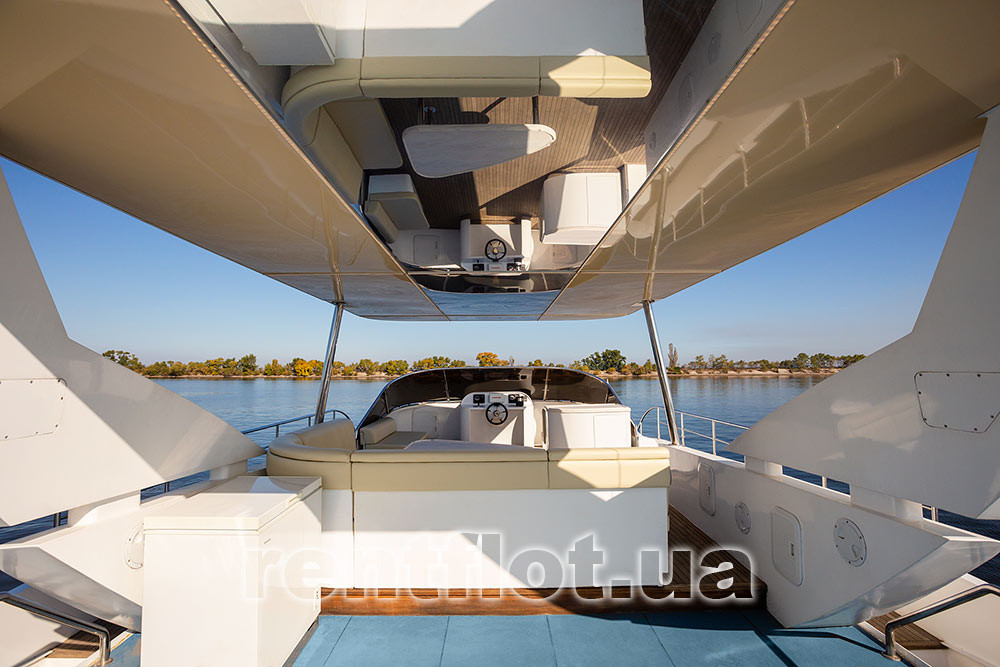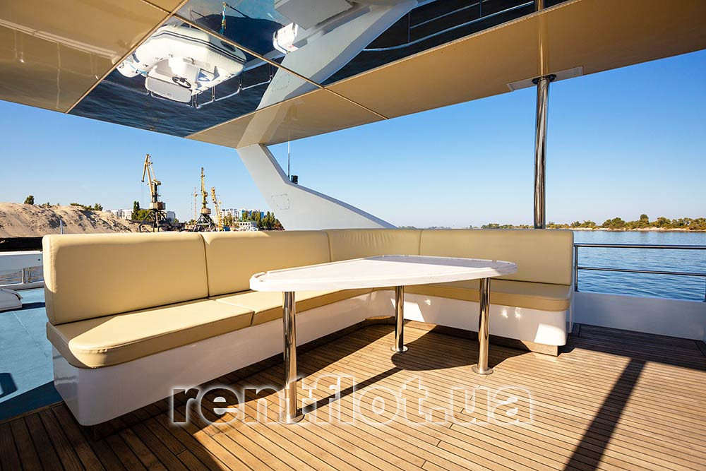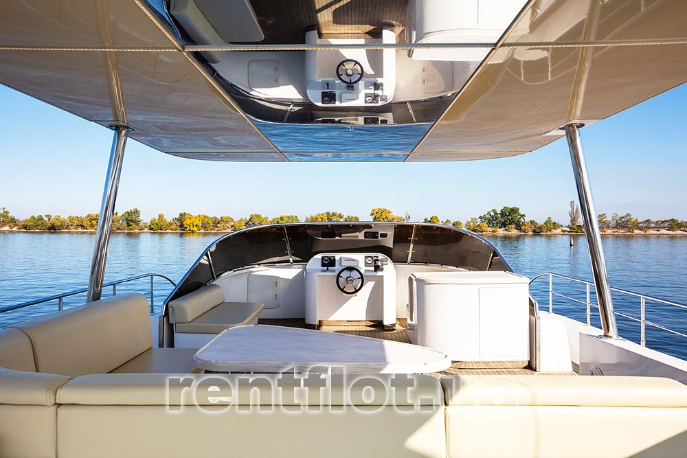 - полуоткрытый флайбридж со столом и диванами