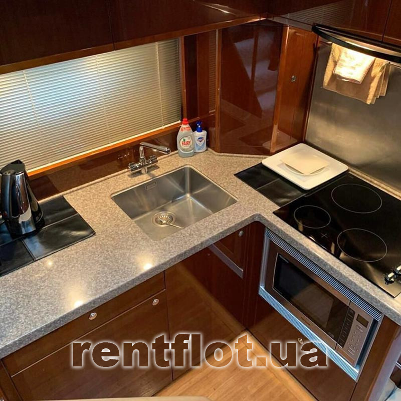 - кокпит оснащён баром с грилем, мойкой, мини-холодильником и отделением для хранения