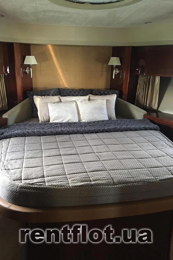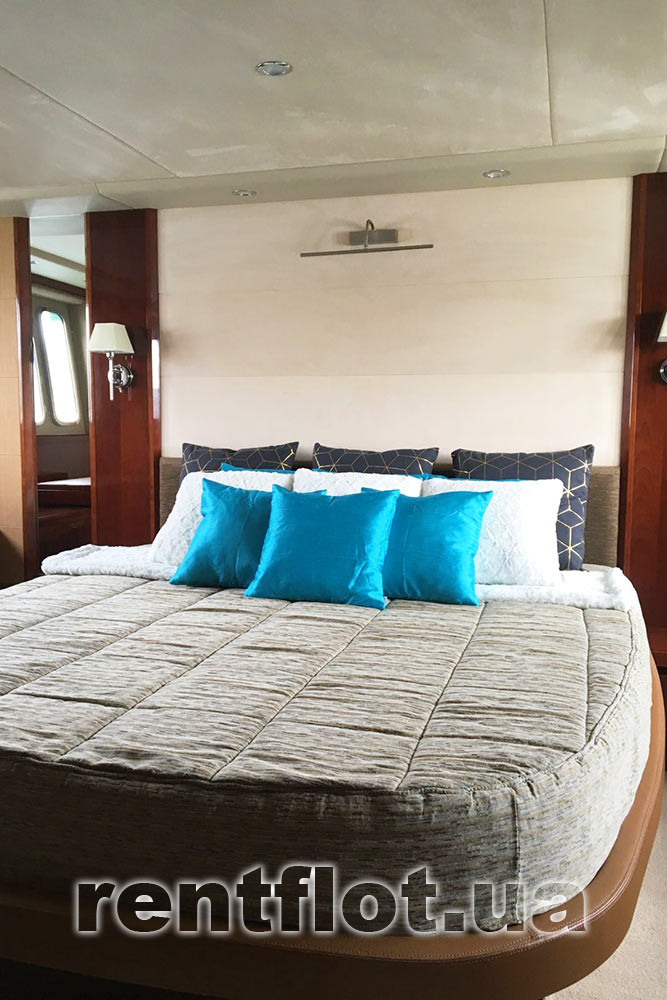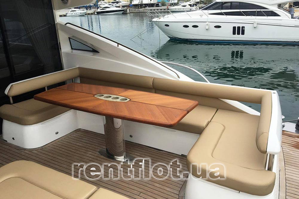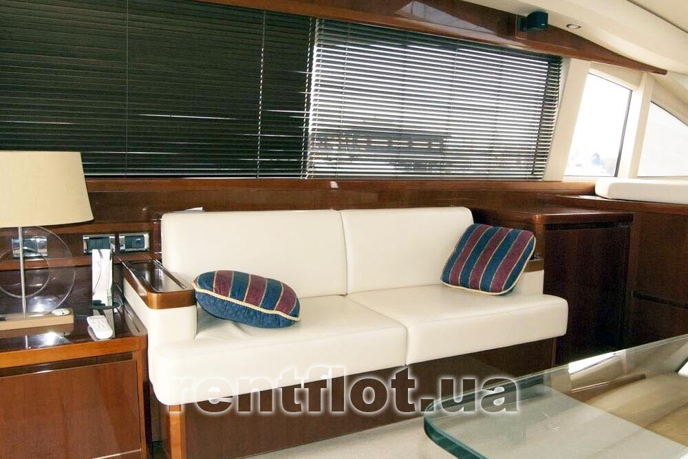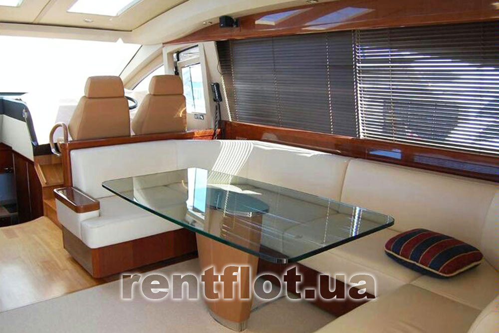 Светлая обивка диванов гармонирует с общей цветовой гаммой интерьера яхты, камбуз яхты оснащен новейшим оборудованием, внутри яхты уютно и светло, т.к. помимо бортовых светильников, свет поступает через иллюминаторы.