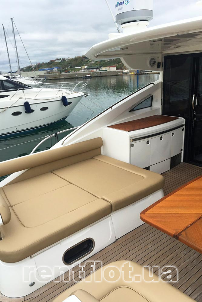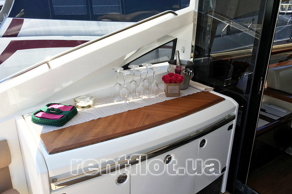 - кокпит оснащён баром, контейнером для мусора, холодильником и отделением для хранения