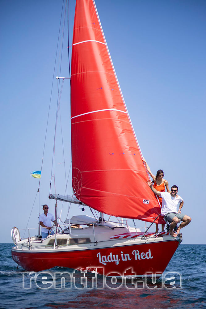 Морская парусно-моторная яхта Леди ин ред престиж-класса.