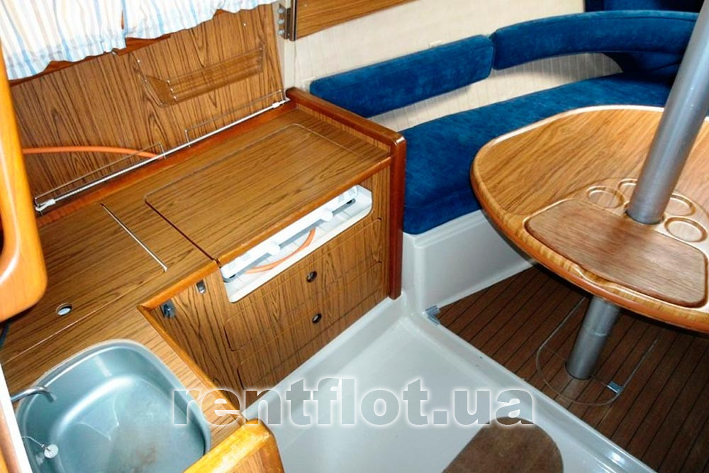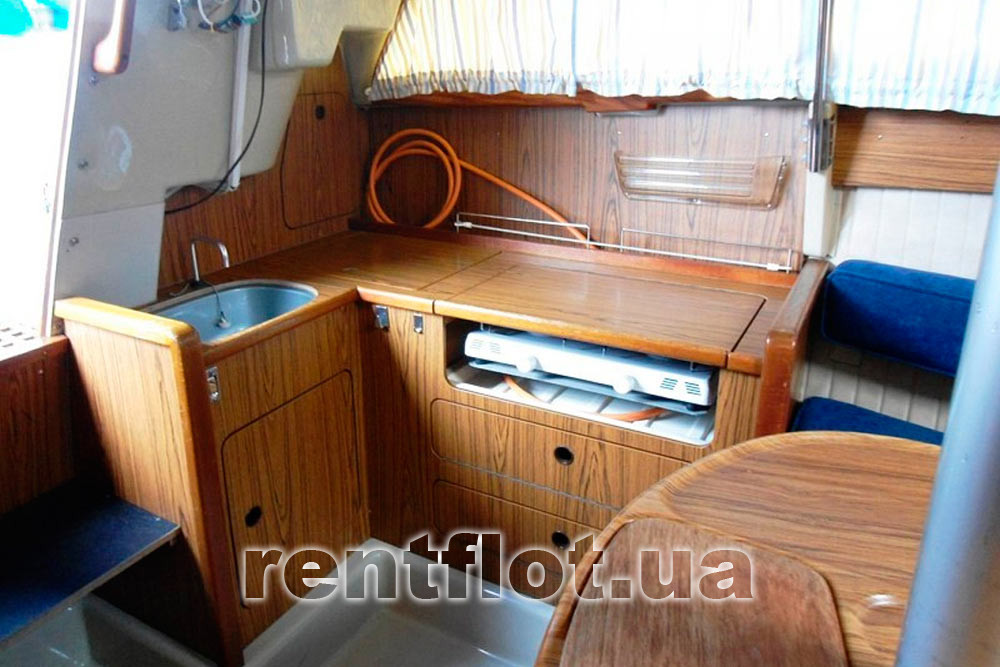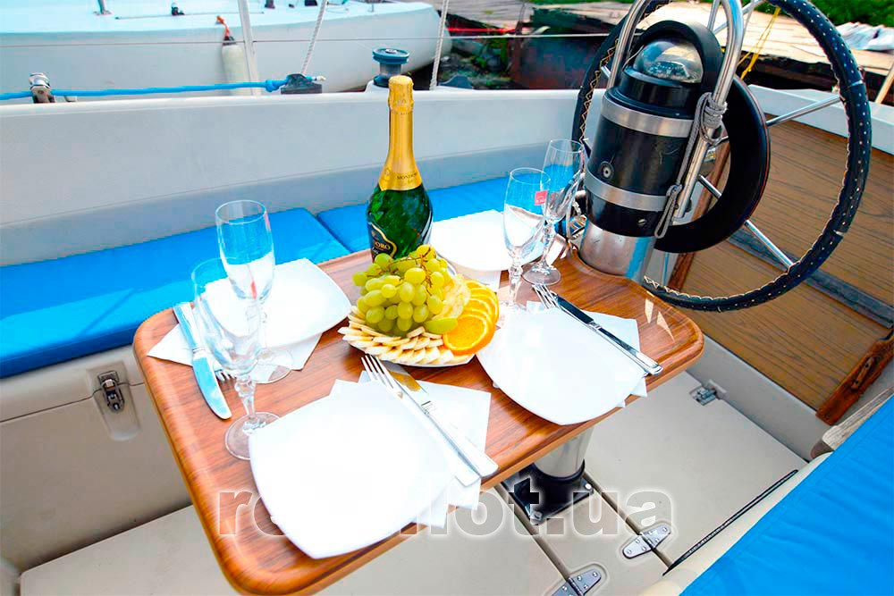 Красивая, комфортная с двумя отдельными каютами, продуманная яхта со всеми удобствами на борту, никого не оставит равнодушным, понравится и взрослым, и детям. А ее жизнерадостный и тактичный капитан проведет вас самыми красивыми местами на Днепре.