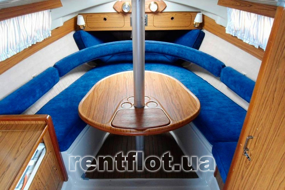 - обеденный стол на 6 персон с полукруглым диваном в кают-компании